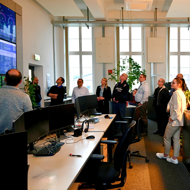 Auf der Agenda stand außerdem ein Besuch der regiocom-Netzleitstelle. Von dort aus stellt ein Expertenteam unter der Leitung von Gerit Schramm unter anderem den reibungslosen Betrieb für mehr als 6.000 Beschäftigte sicher.